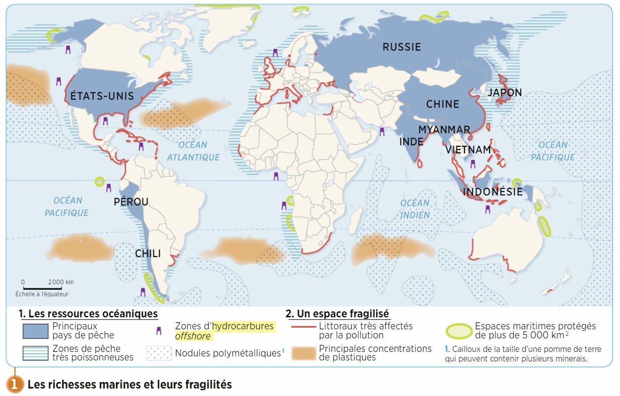 - au moins 2 zones de surpêche (colorier au crayon de couleur bleu) [voir carte au tableau]