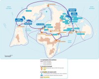 - au moins 2 zones de pollution plastique (colorier au crayon de couleur noir) [voir carte 1 page 264]