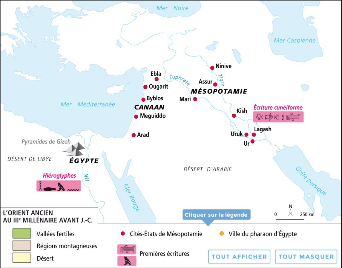 Consigne. Localiser l’apparition des premiers États et des premières écritures.