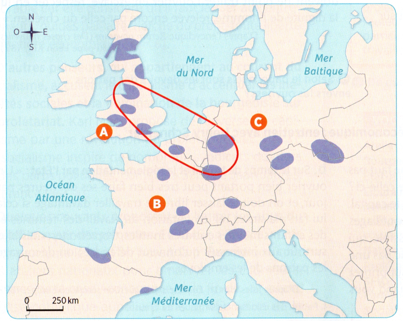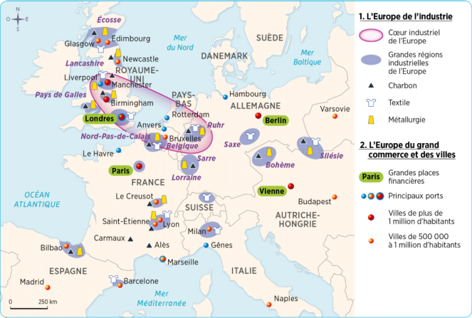Consigne. A l'aide de la carte 3 page 77, situer dans l’espace l’Europe industrielle à la fin du XIXᵉ siècle.