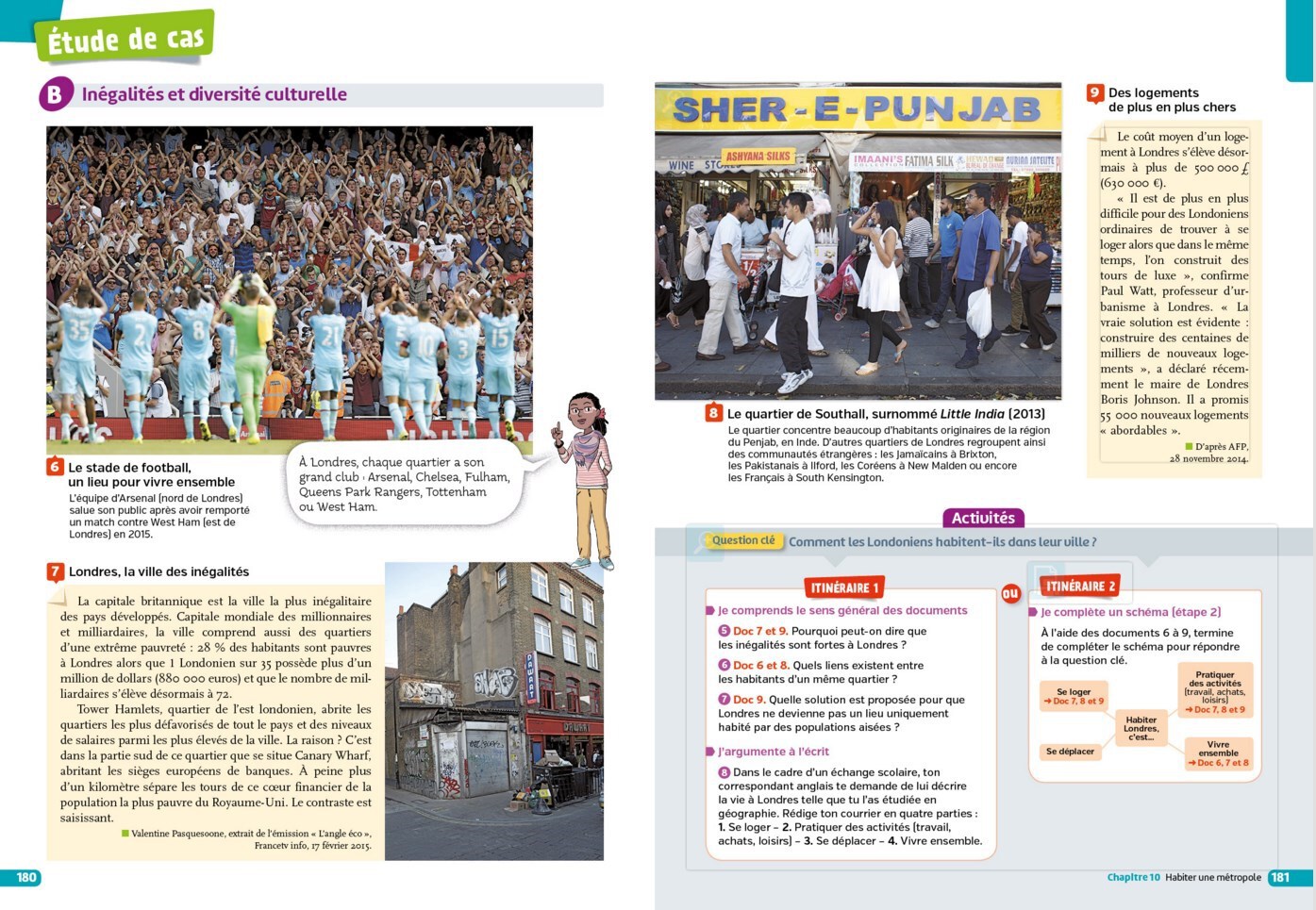 Consigne. Décrire comment Londres est habitée : le lieu[*], les habitants[*], la cohabitation[*]. (A l'aide des documents pages 178 à 181, compléter le tableau avec des mots ou des expressions.)