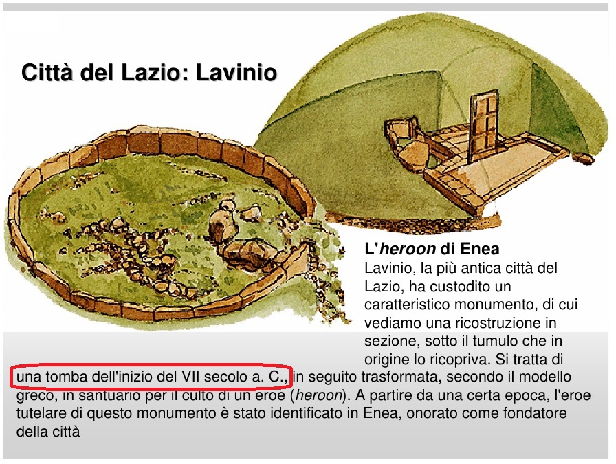 Les archéologues ont fouillé le tombeau dit d'Enée. Ils l'ont daté du VIIe siècle avant JC. Ils en ont proposé une reconstitution.