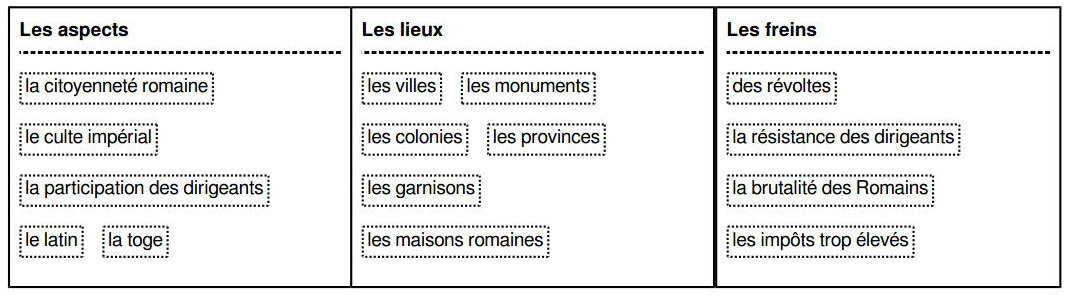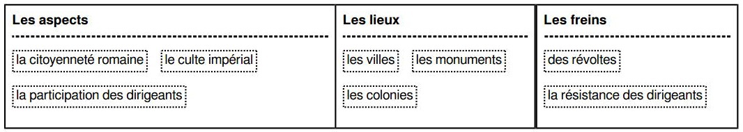 Décrire la romanisation des habitants de l'empire. (Classer les connaissances dans le tableau.)